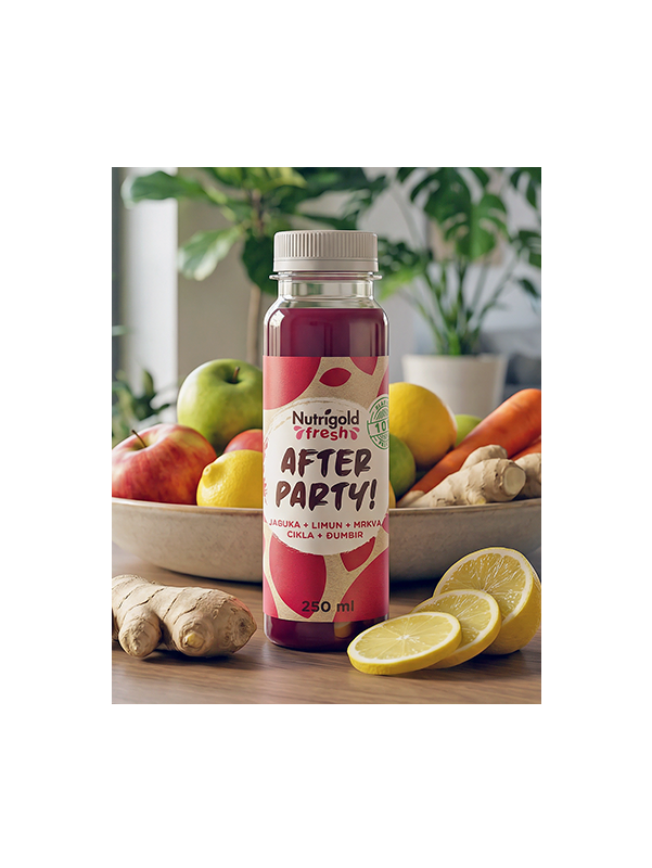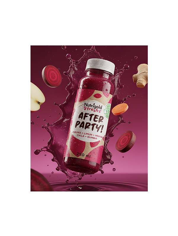 After Party ist kein gewöhnliches Getränk, sondern der ideale Partner für gute Laune. Stellen Sie sich vor, Sie sind mitten in einem anstrengenden Tag - ein Schluck und Sie sind sofort in Schwung. Bevor Sie zur Flasche greifen, schütteln Sie sie einfach – wie nach einem Nickerchen - und schon durchströmt eine Welle der Frische Ihren Körper. Kaltgepresst bedeutet, dass alle Aromen erhalten bleiben und das Obst und Gemüse so frisch schmeckt, als hätte man es gerade vom Baum oder aus dem Garten gepflückt.