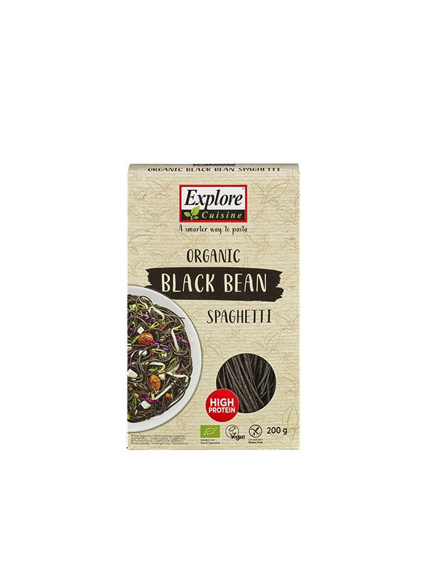 Erfrischen Sie Ihre klassischen Gerichte mit den neuen, gesünderen Explore Cuisine Spaghetti, die aus nur einer Zutat bestehen: Bio-Schwarzsojamehl.