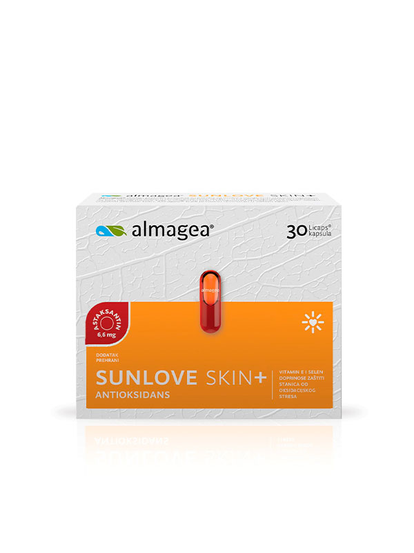 Almagea® Sunlove Skin+ ist ein Nahrungsergänzungsmittel in innovativen Licaps®-Kapseln und enthält eine spezielle Kombination aus: