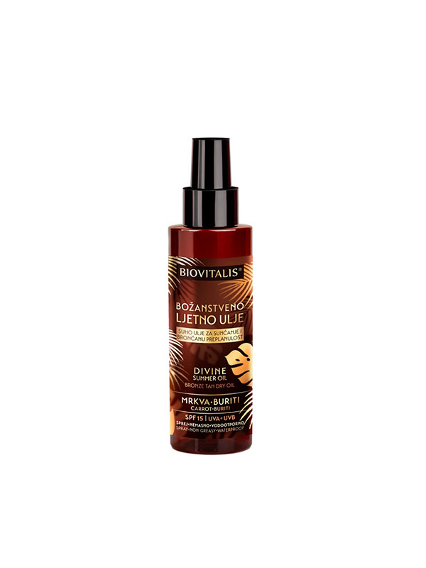Biovitalis bietet ein luxuriöses, schnell einziehendes Trockenöl an, das schnell einen göttlichen Sommerlook verleiht und gleichzeitig die Haut vor Lichtalterung schützt.