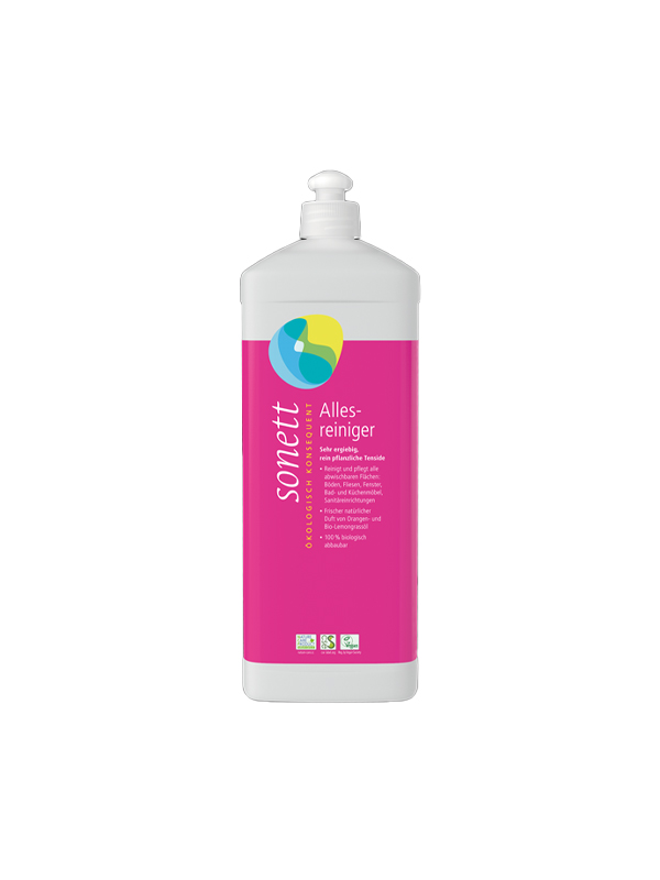 Sonett Universalreiniger reinigt schonend alle wischbaren Oberflächen: Böden, Keramikfliesen, Fenster, Bad- und Küchenmöbel, Sanitäranlagen.