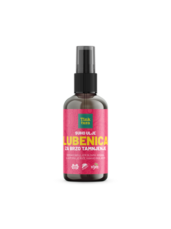 Tinktur Trockenöl ist ein schnell einziehendes Trockenöl, das die Bräunung am ganzen Körper beschleunigt und die Haut von Kopf bis Fuß pflegt. Es enthält einen Pflanzenextrakt, der die Melaninproduktion in der Haut anregt und für einen gleichmäßigen, natürlichen Teint sorgt. Tragen Sie es auf Ihr Haar auf und genießen Sie den ganzen Tag den herrlichen Duft der Wassermelone.